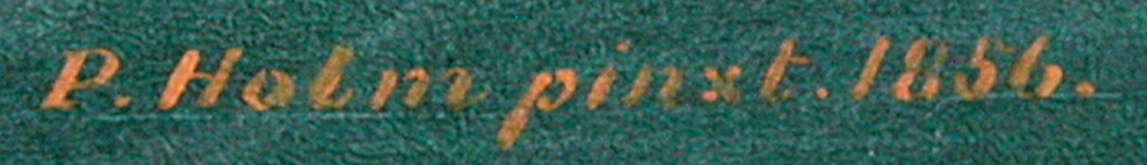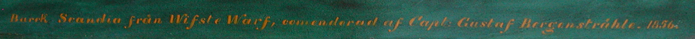 19TH CENTURY SHIP PORTRAIT showing a port view of the Swedish bark Scandia off Heligoland. Off her stern is a portside stern view of a ship under full sail. Off the bow is a pilot schooner and the island of Heligoland in the background. Oil on canvas. 25" x 36" plus a 2 1/2' gilt frame. Neatly lettered inscription along the lower left "Bark Scandia fron Wifste Warf, comenderad af Capt: Gustaf Bergenstrahle. 1856". Signed by the artist lower left "P. HOLM pinxit 1856". Peter Christian Holm(1823-1888) was a well known German ship portraitist whose work is found in the top maritime museums across the the world. Condition excellent. Never been lined so there is expected but sound age crackling throughout. One tiny old patch on the reverse that is not visible from the front. Overall a very bright and pleasing ship painting.
