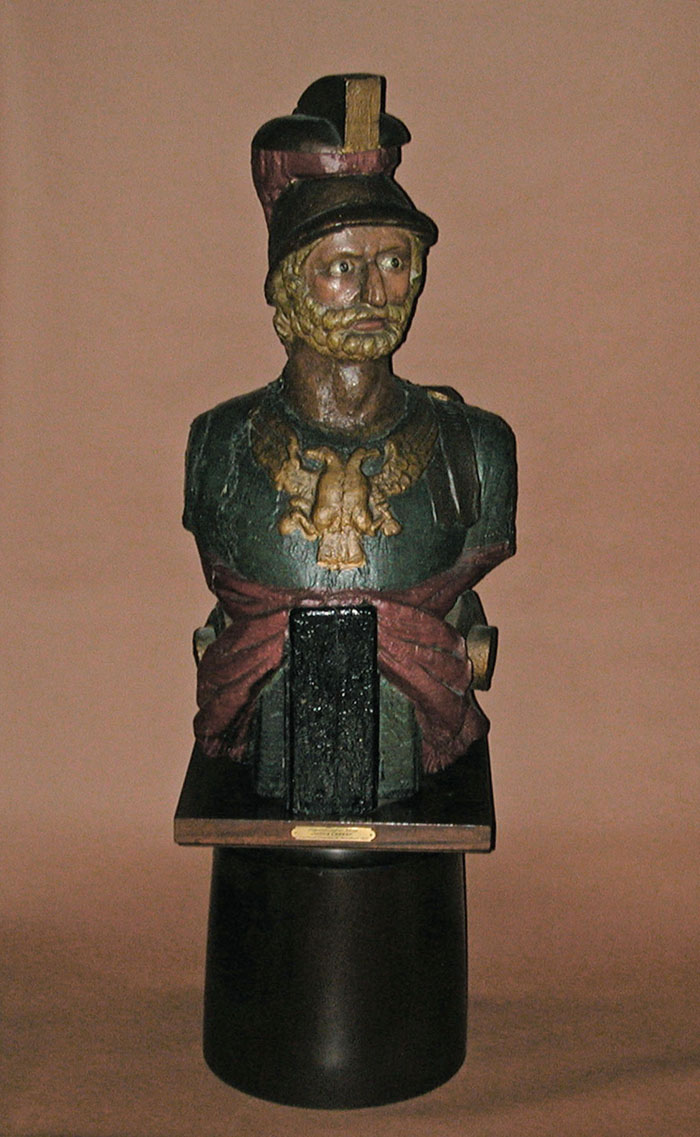 Extremely rare whaleship figurehead from the ship “Julius Ceasar” which was built at Sag Harbor, Long Island NY. Homeports Sag Harbor & New London, CT. Former collection of the Jibboom Club, New London, CT. 40” tall