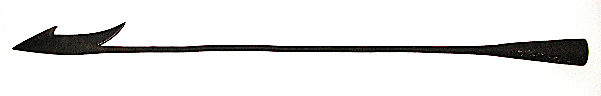 EARLY STYLE WHALING TOGGLE HARPOON commonly referred to as the Temple iron. Stamped with the maker's mark "HOWARD". 35 5/8" long. Condition overall good with typical rusting to the iron. Circa 1848.