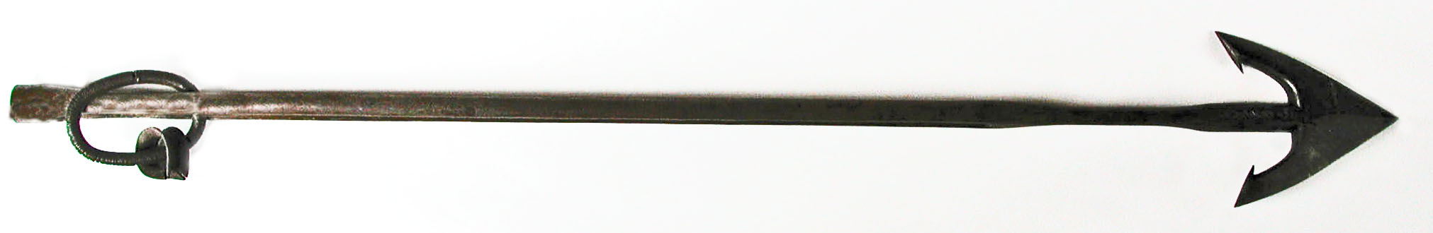 MASSIVE, FULLY MARKED, GREENER GUN HARPOON. 52" long. Two-flued head deep stamped on one side with the vessel name "OCEAN NYMPH". Reverse with maker or owner's marking and date "R & Co. 1866". Condition about mint. From my personal collection.